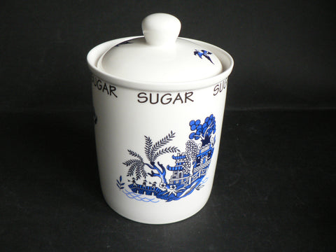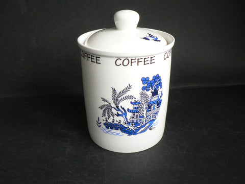 Blue willow pattern, china, Tea sugar and coffee canisters