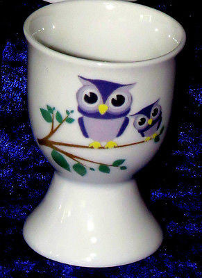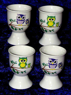 Set of 4 ceramic cute owl design eggcups egg cups 2 colours